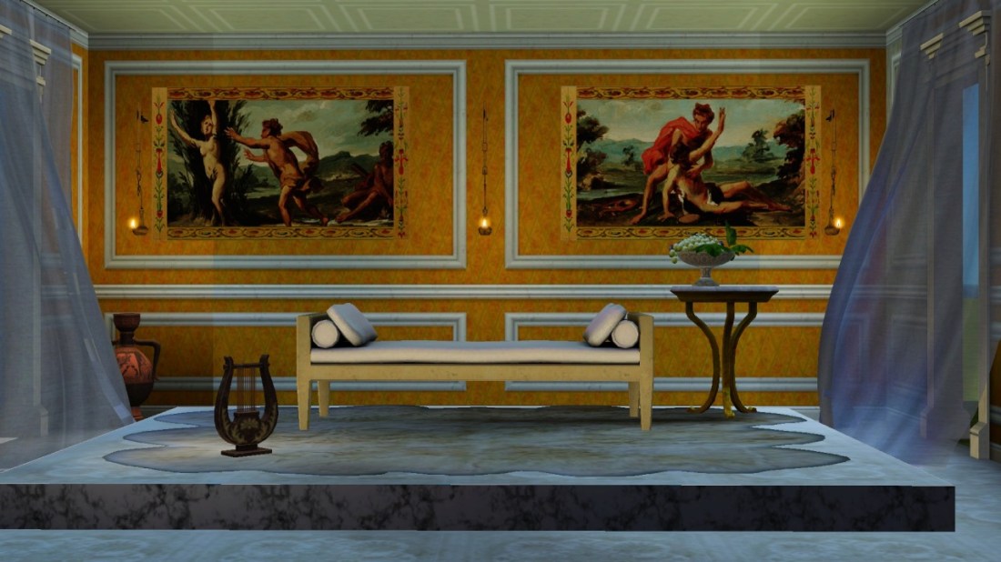 There are not many period works of art either, for TS3, like mosaics and frescoes – and the houses of the wealthy Romans were lavishly decorated (I have a board on Pinterest for that). At least in that I can help – I have already released these frescoes and these mosaics, and now am working on another frescoes set, telling the story of Apollo.