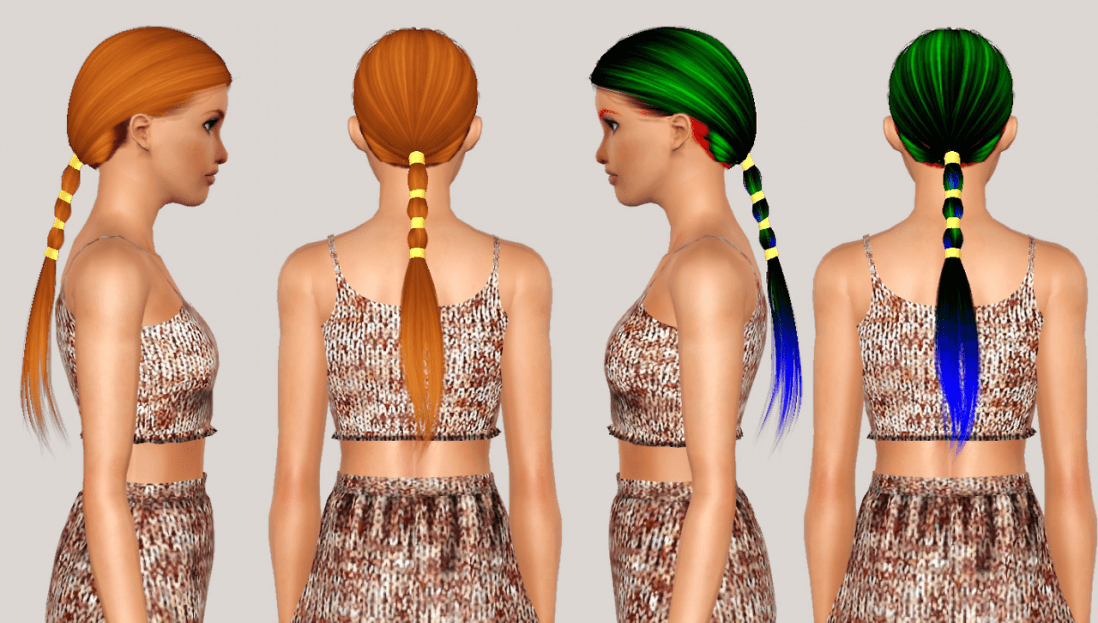 First up is a hair from the new store set called Surfing Side Braid. It is a hat hair because it has a tiny rubber band at the end of the braid. Both hairs are .package format only because I couldn’t get them to work with TSRW.