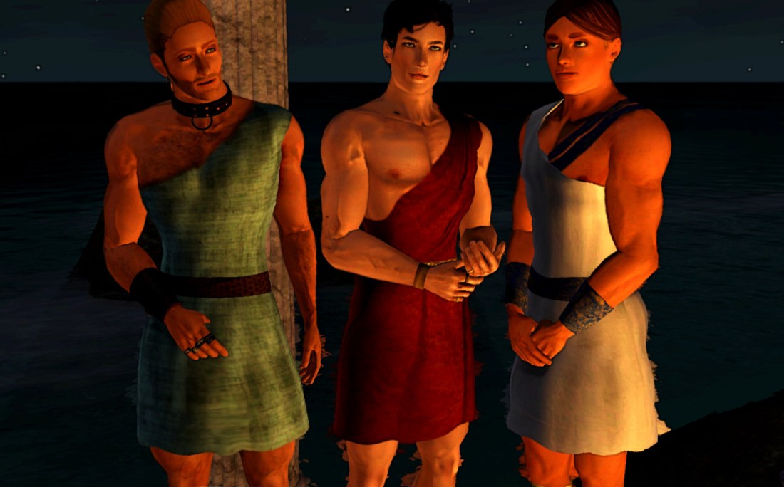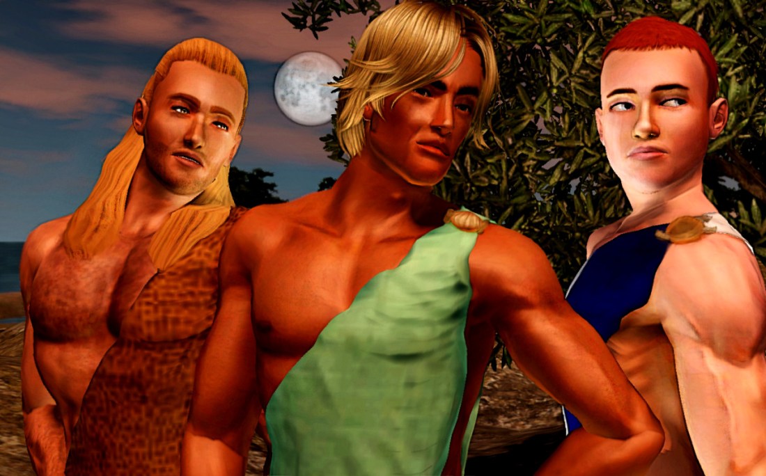 (yes, the Sim in the middle is Laurent D’Allegro from The Last Canvas. Oneiroi started as a dream of his, and I intended to use him as protagonist again until I created Agathon.